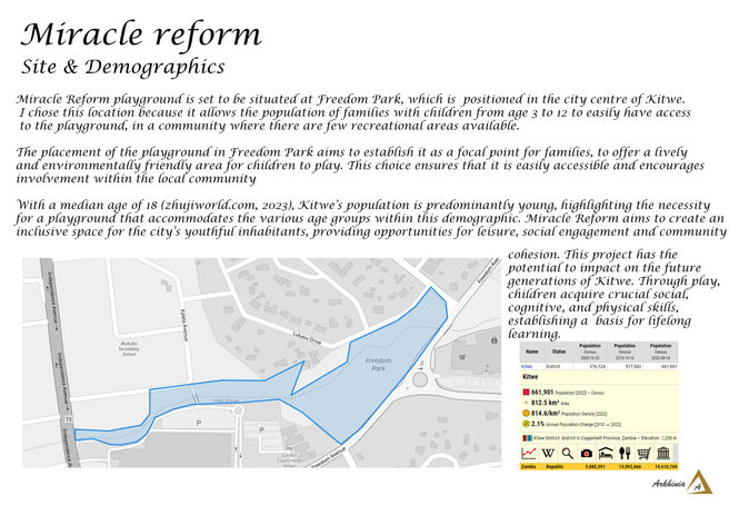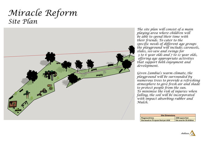 Miracle Reform is an innovative sustainable playground design that will serve the community in Kitwe, Zambia. This will enrich the lives of families and particularly children who desperately need the space to play, learn and discover in a clean and safe environment.